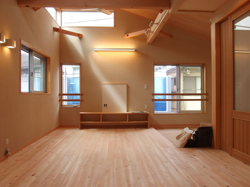 勾配天井にして広がりのある空間が望まれました。