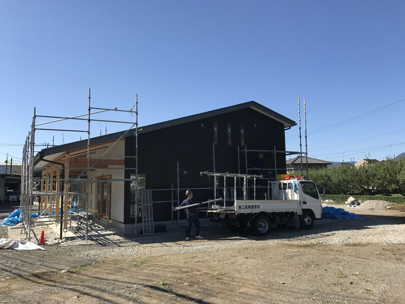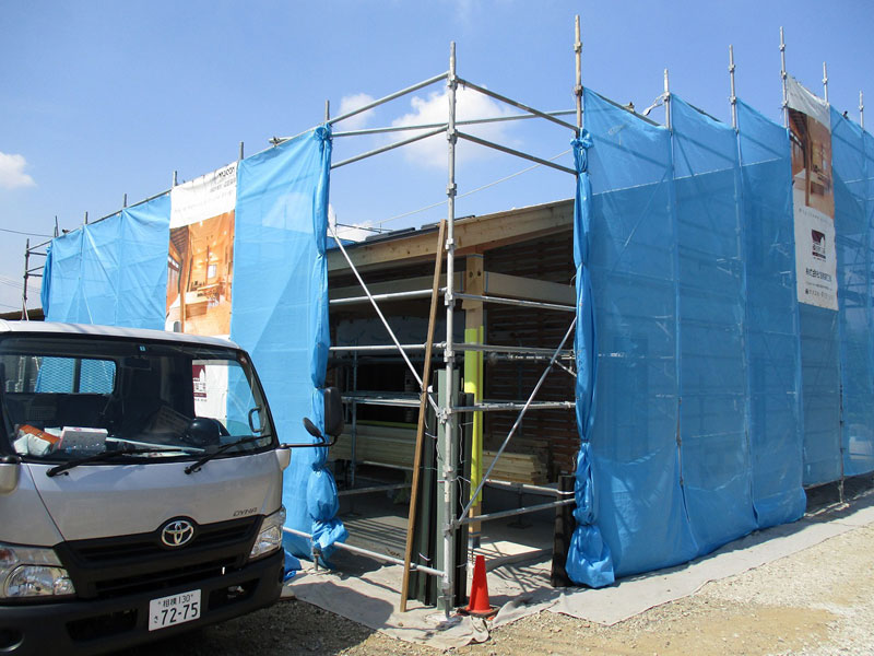 ちょうど外部工事が終わり、いよいよ足場を取り払うタイミング。