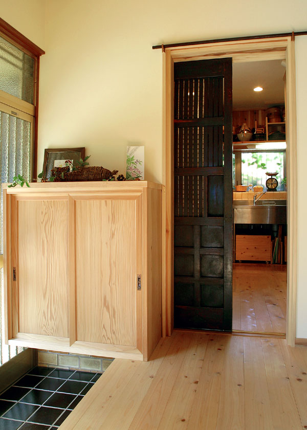 写真左側サッシの前に古道具の建具を入れさせていただきました。