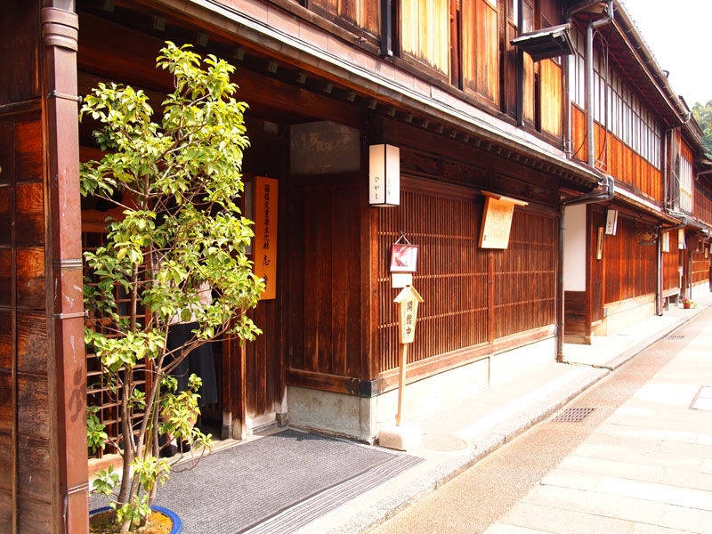 金沢は金箔が有名な地域でもあり、ひがし茶屋街の通りには
