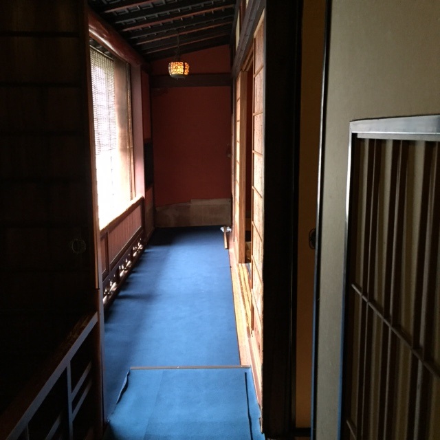 群青色のほかに紅色の壁の和室もあり、通常の落ち着いた