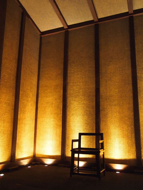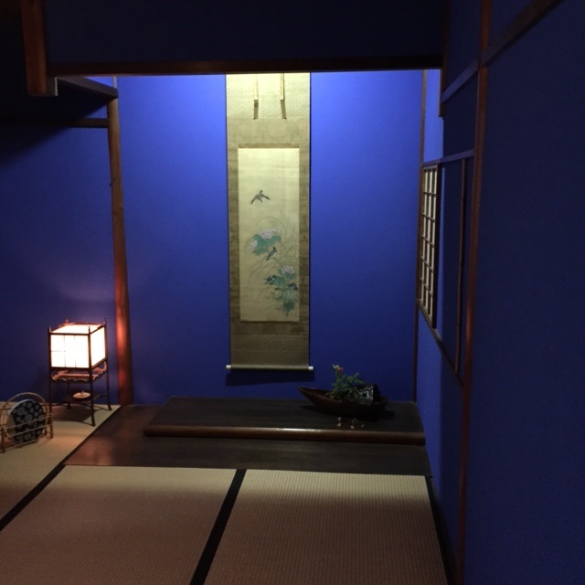 群青色の壁が広がり、とても斬新で印象的な和室でした。