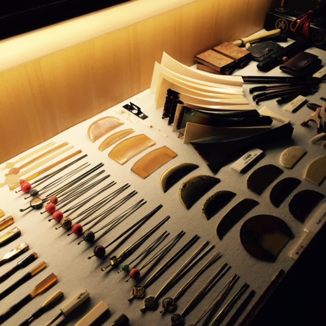 1階には芸妓が当時身につけていた簪や小物が展示されておりました。