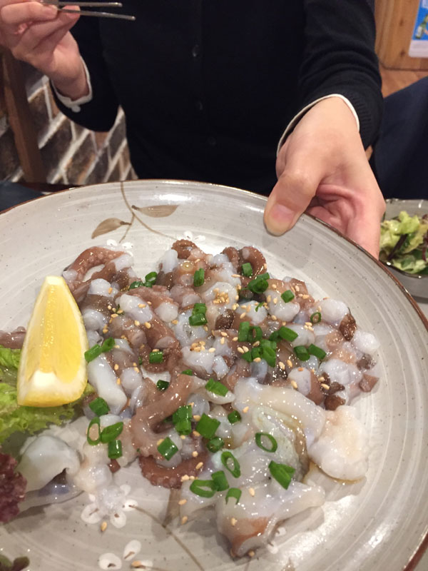 ユッケも蛸刺しもとにかく新鮮、蛸は踊り食いです。