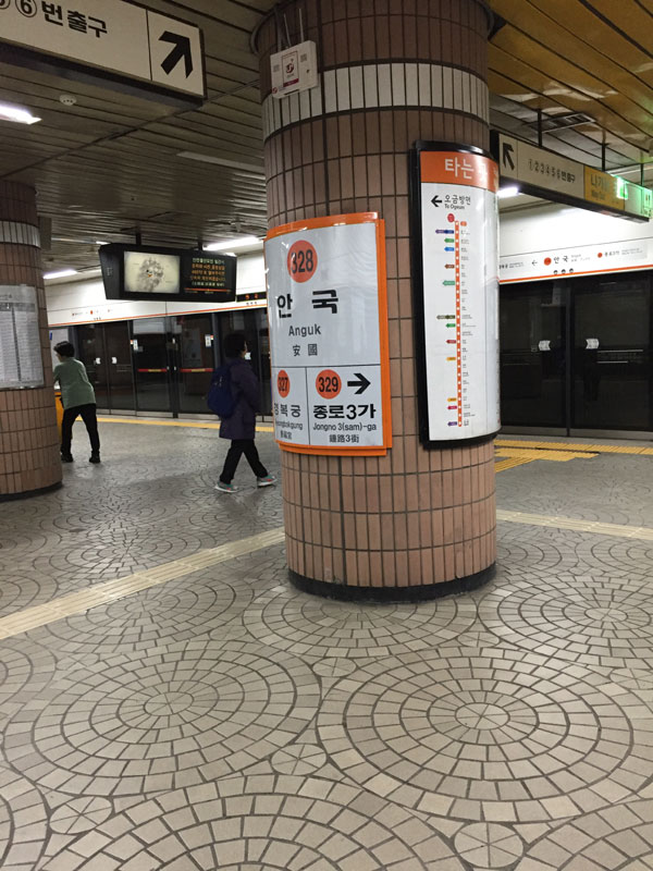ソウルの地下鉄はハングルサインのみが多く、