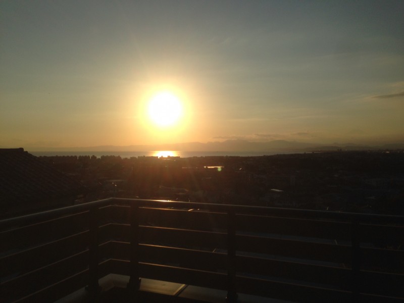 もう少し夕陽が落ちるまで待てばもっときれいだったかも。。
