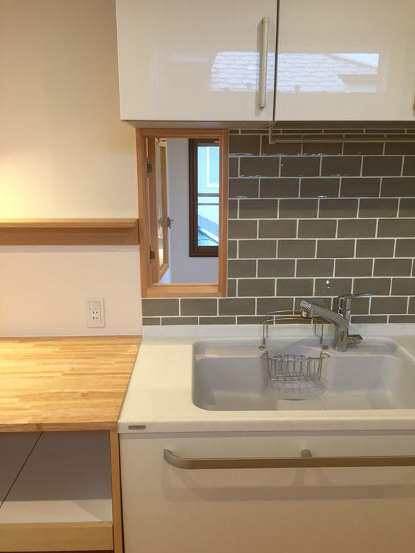 キッチン前には小窓も造作、階段ホールへの通風もそうですが、