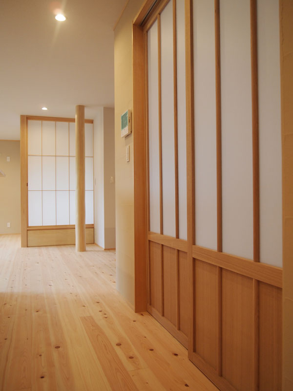 床材は、1階は桧の無垢材、2階は杉の無垢材を張りました。