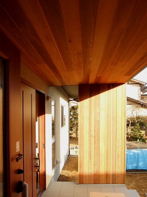 異素材を中和する様に玄関は木の柔らかさで包んでおります。