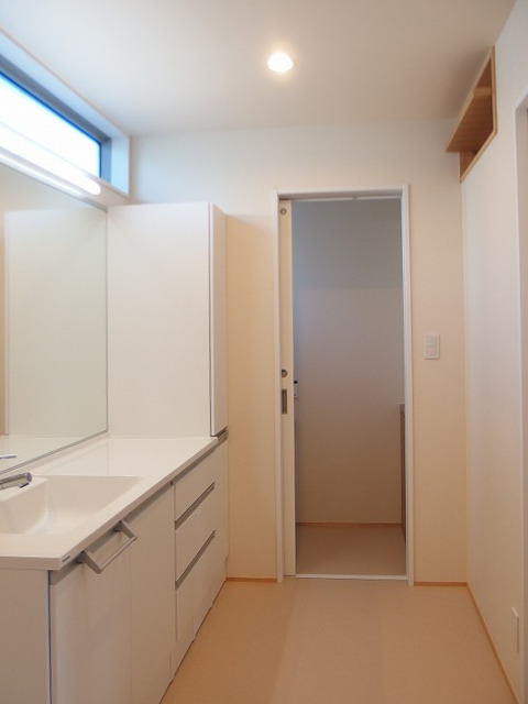 北側に面する洗面室は部屋間の明かりとりガラスとハイサイドライトで。