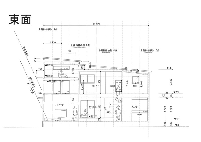 逆に、南東のリビングには、吹き抜けにFIX窓、