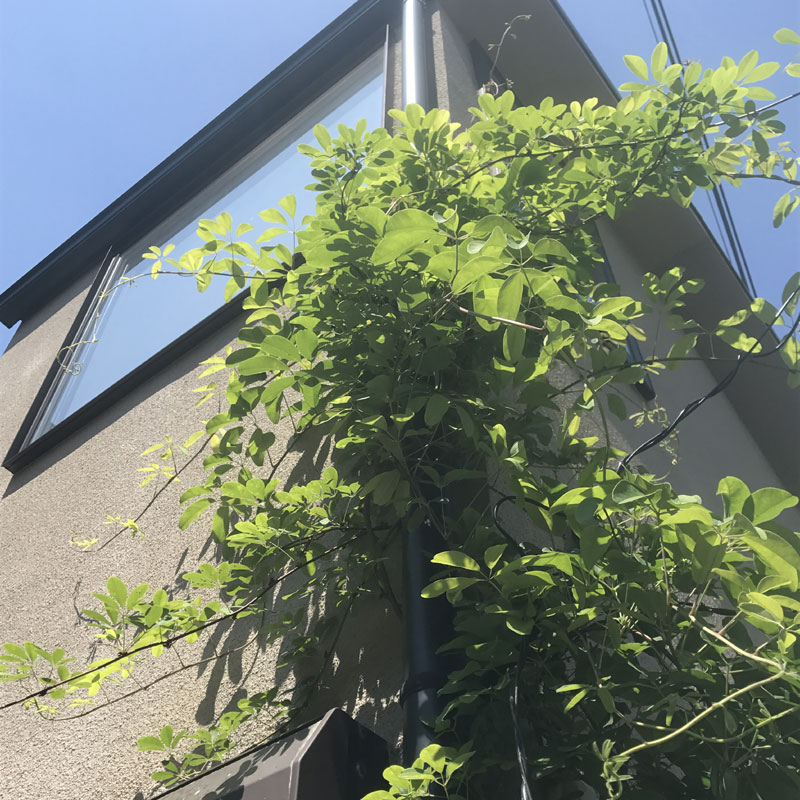 雨樋伝いにぐんぐん伸び、今では2階の窓に届くほど。