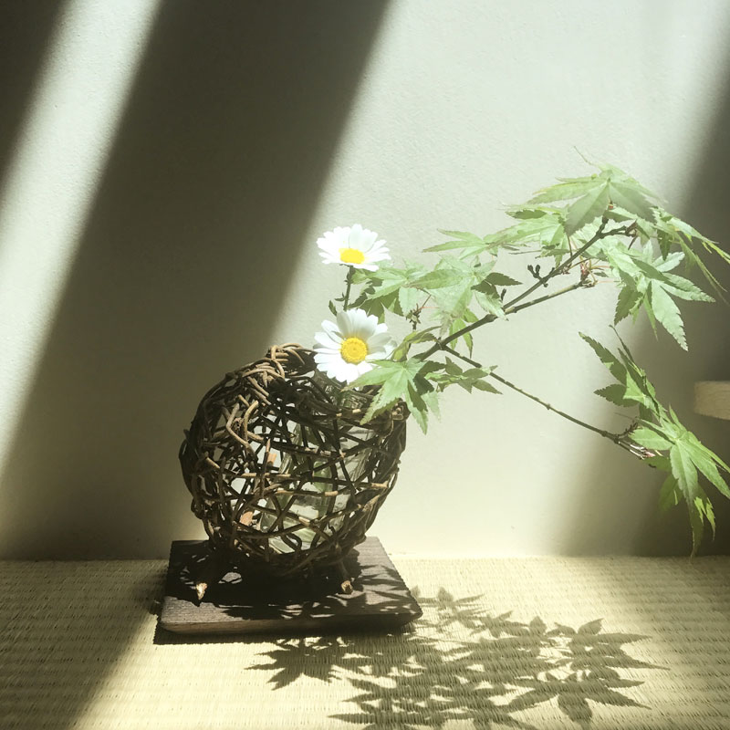 若々しい萌黄色のカエデを活けてみました。