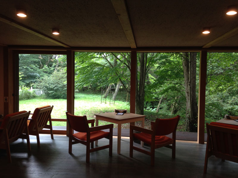 昨夏に訪れた軽井沢の理想的な室内からの緑。
