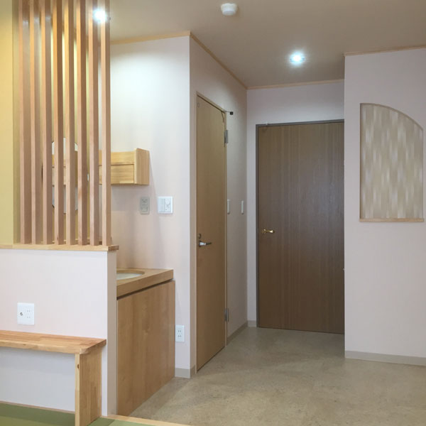 ナチュラル色で竹格子や障子を計画させて頂きました。