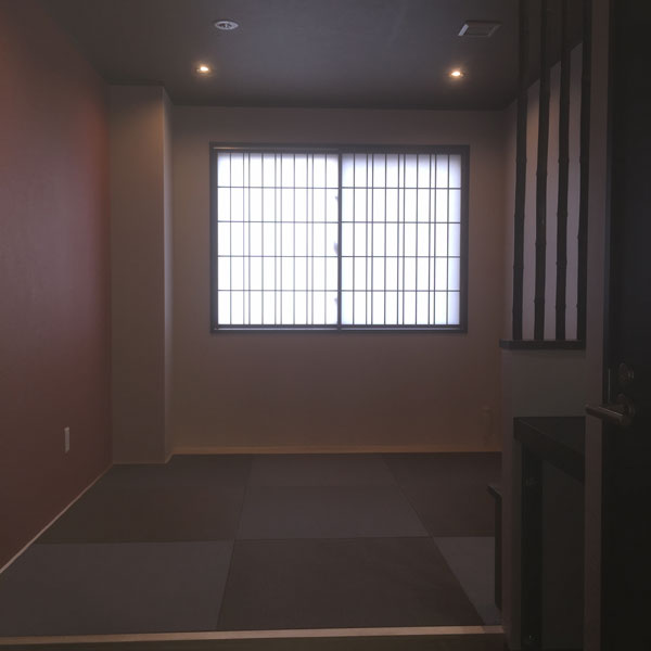 畳や内装材、格子の化粧材等を濃い色合いで統一しました。