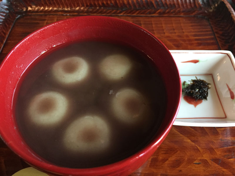 そば汁粉とそばがきを使った伊吹団子を注文。