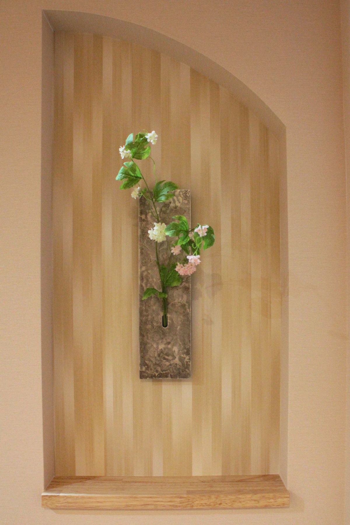 旅館に来たような雰囲気を出すために〝和〝なニッチを造作しました。