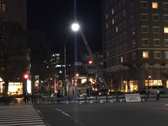 七夕まつりの飾りつけは前日から始まります。
