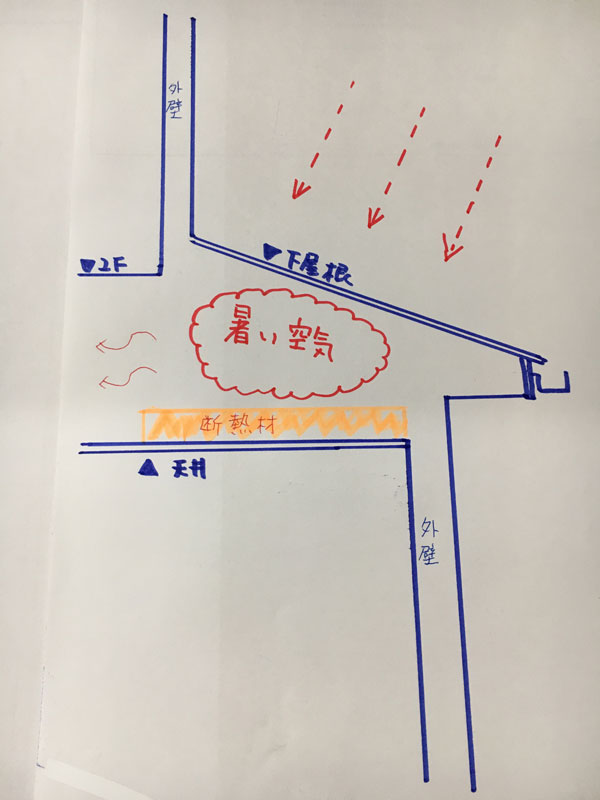 屋根裏に侵入した熱で熱くなった空気が