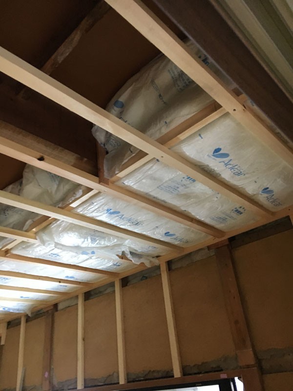 断熱の施工としては、天井を壊したところの