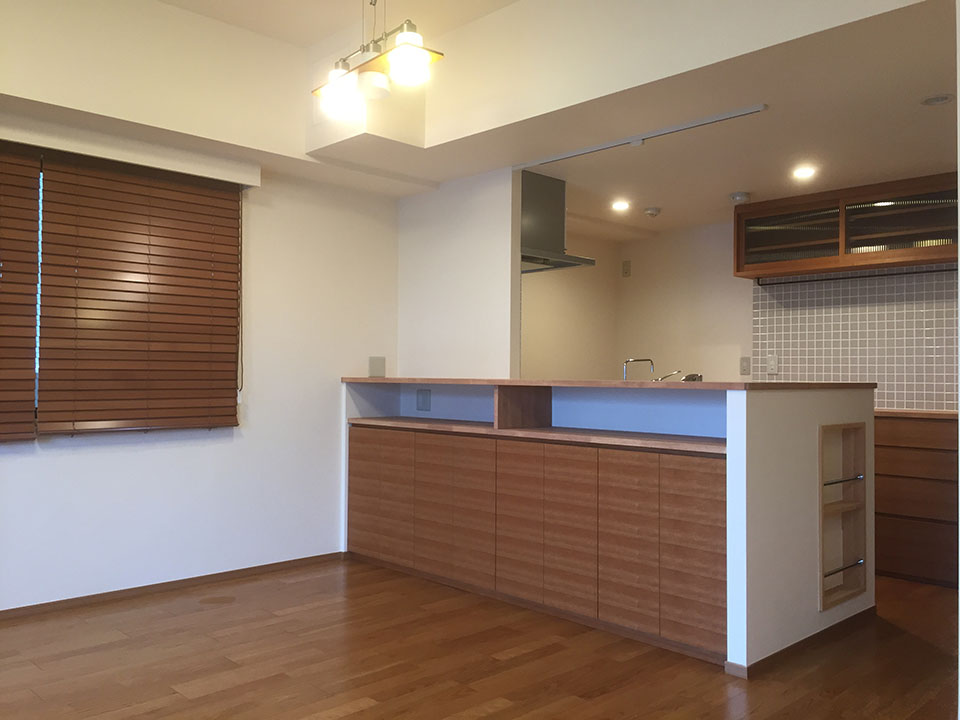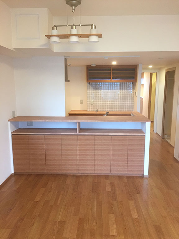 キッチン周辺のさがり壁や袖壁を全て取り払い