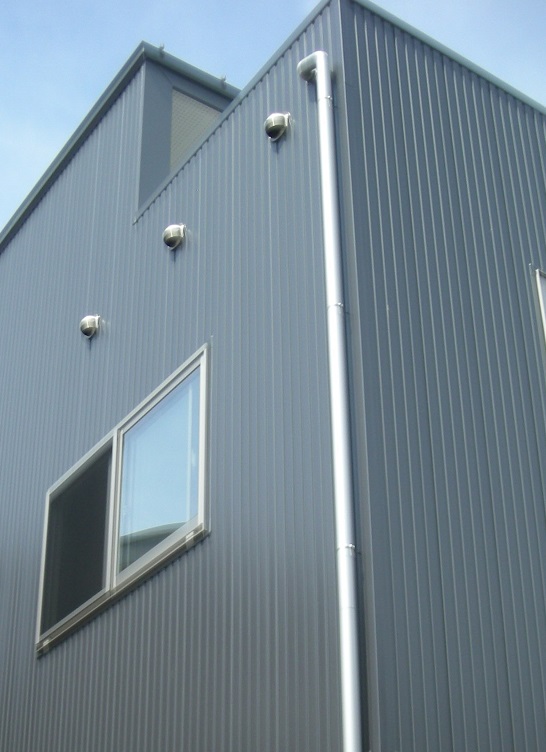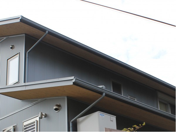 劣化の心配が少ない北側は塩化ビニールの雨どいにする、