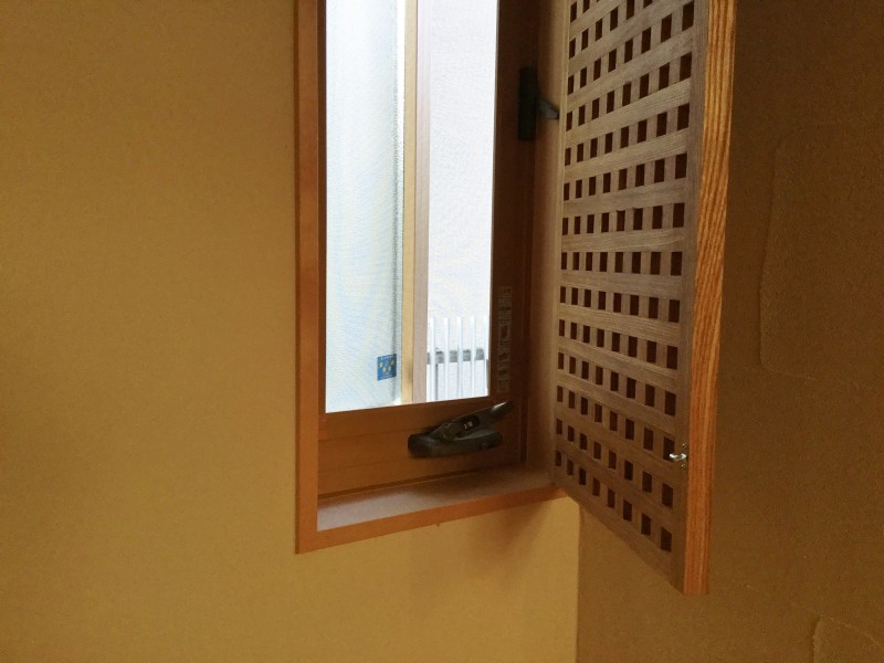 外窓はオペレーターでクルクル開け(網戸は固定網戸)、