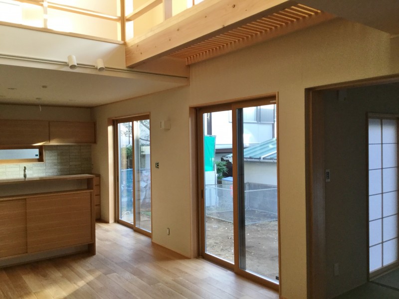 米松の天井板の仕上げや床から高さ1,100の地窓&内障子により、