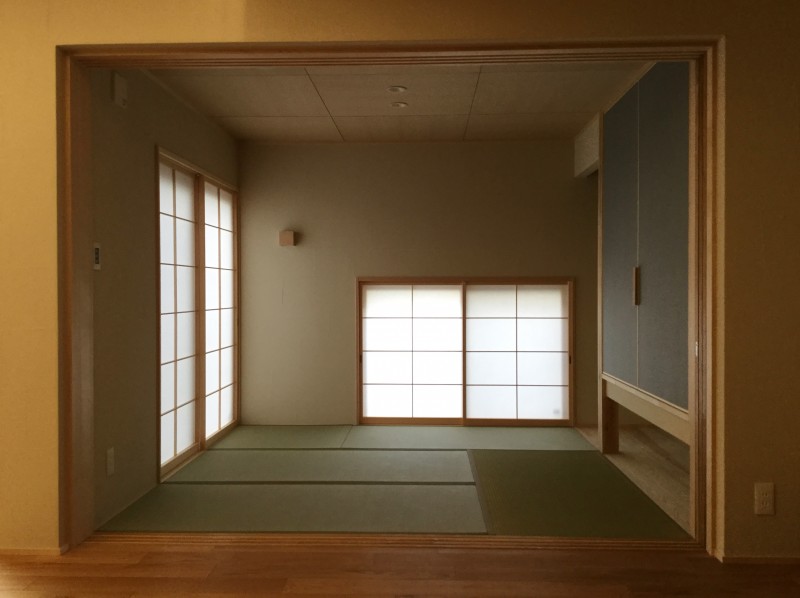 来客時など仕切りたい時には、3本引き込み戸を設けてあります。