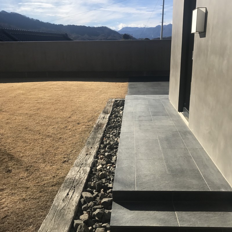 漆喰の白、墨色の黒、そして天然の木の風合。