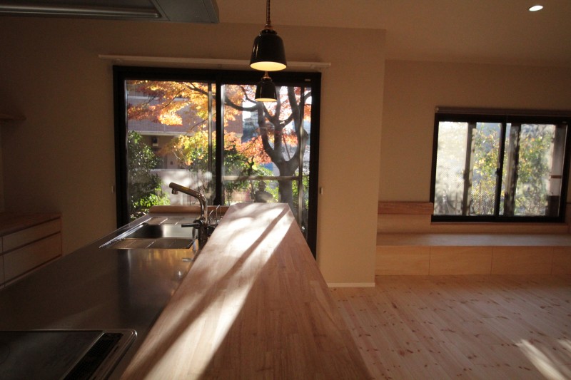 キッチンの裏の窓が視線の先です。