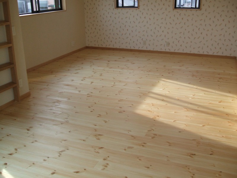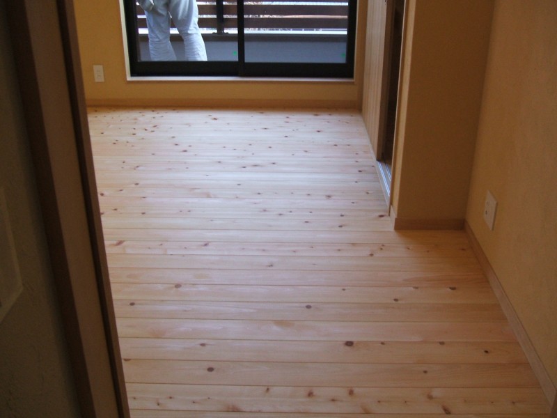 パインとヒノキの床板は、すっかり日焼けして、