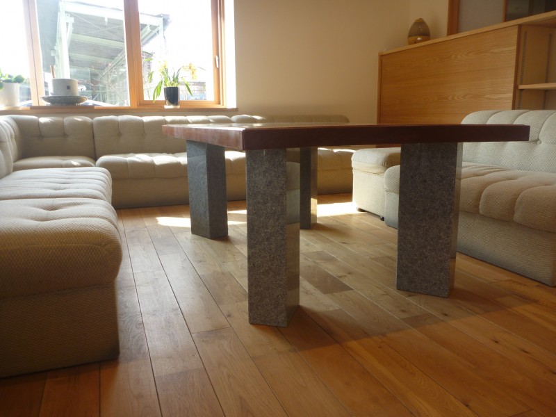 内部のダイニングテーブルの脚も天然石です。