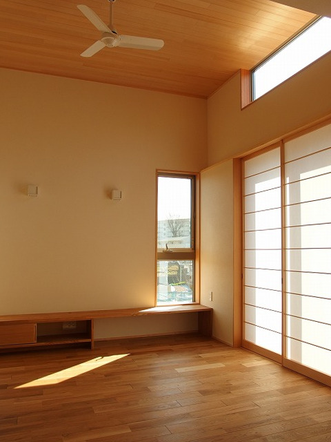 掃出し窓には引込み障子を設えました。