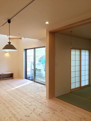 リビングからつながる和室には直射を柔らかくする障子を