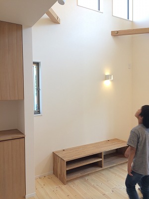 吹抜けは4m程に抑え、ハイサイドウィンドウは