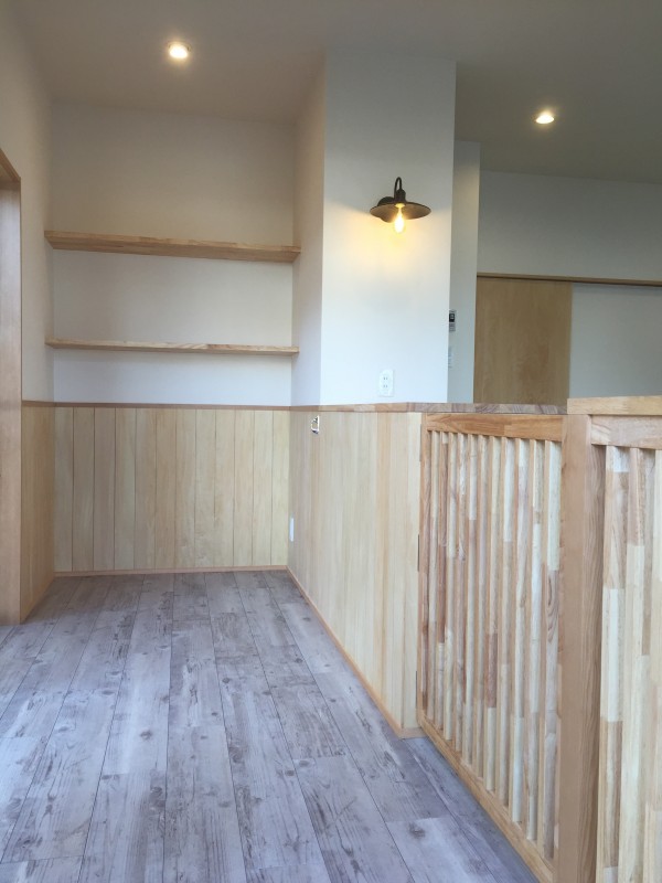木の柔らかい雰囲気を出すため、腰板を計画。