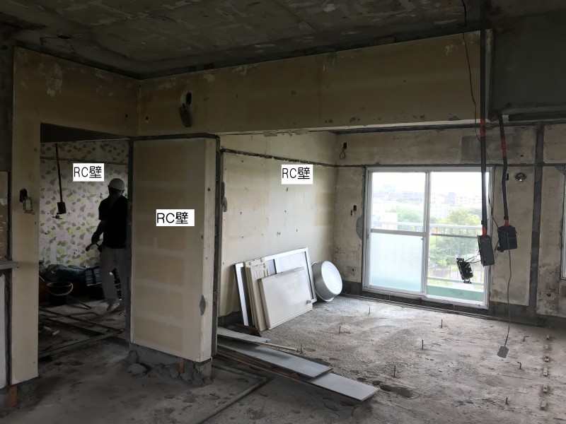 中の間仕切り壁は、RC構造ではなく、