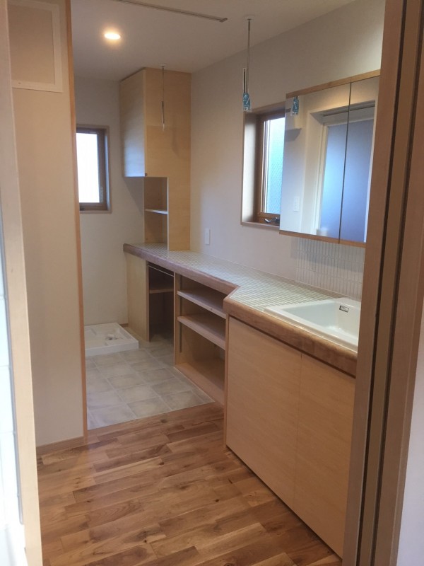 かつ、脱衣時には洗面室の中間で目隠しが出来る様に