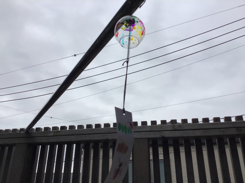 そして涼しさを演出するために、先日子供が絵付けしてきた風鈴をぶら下げようと思いつきました。